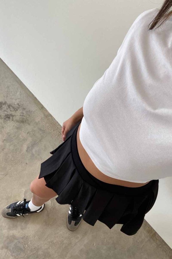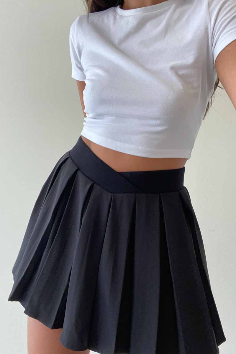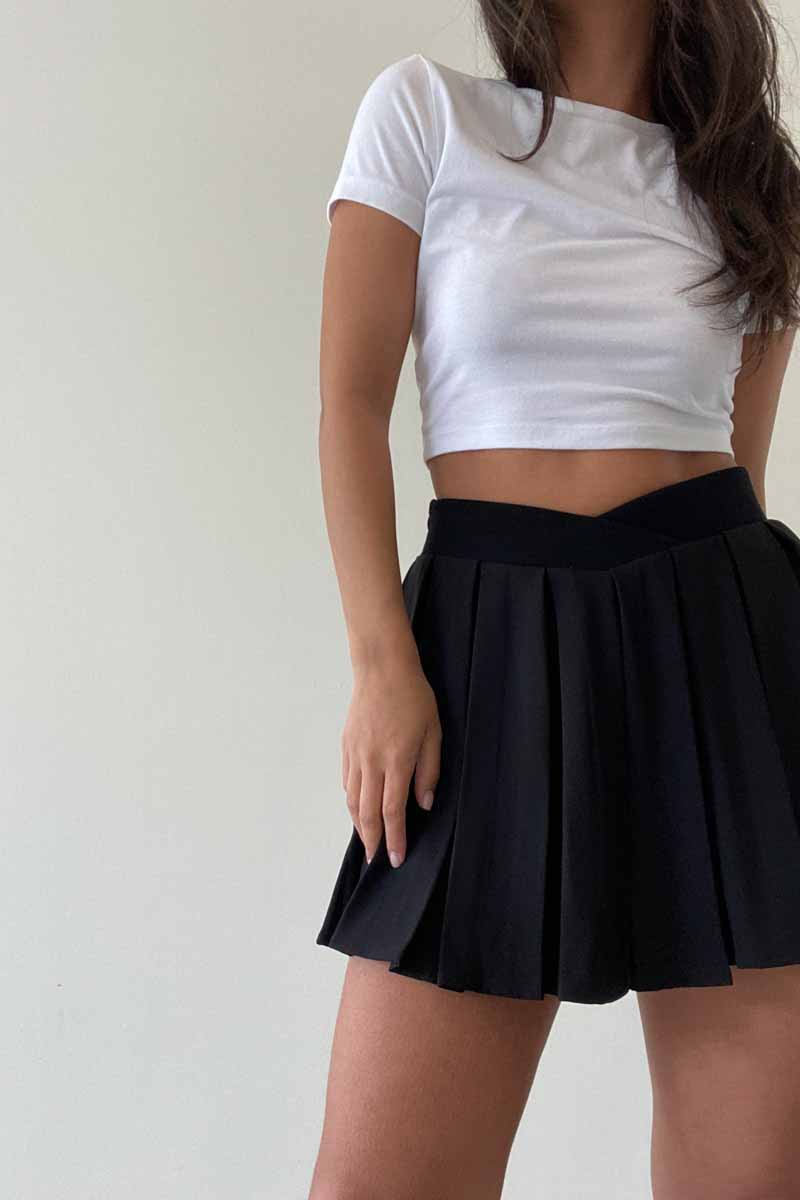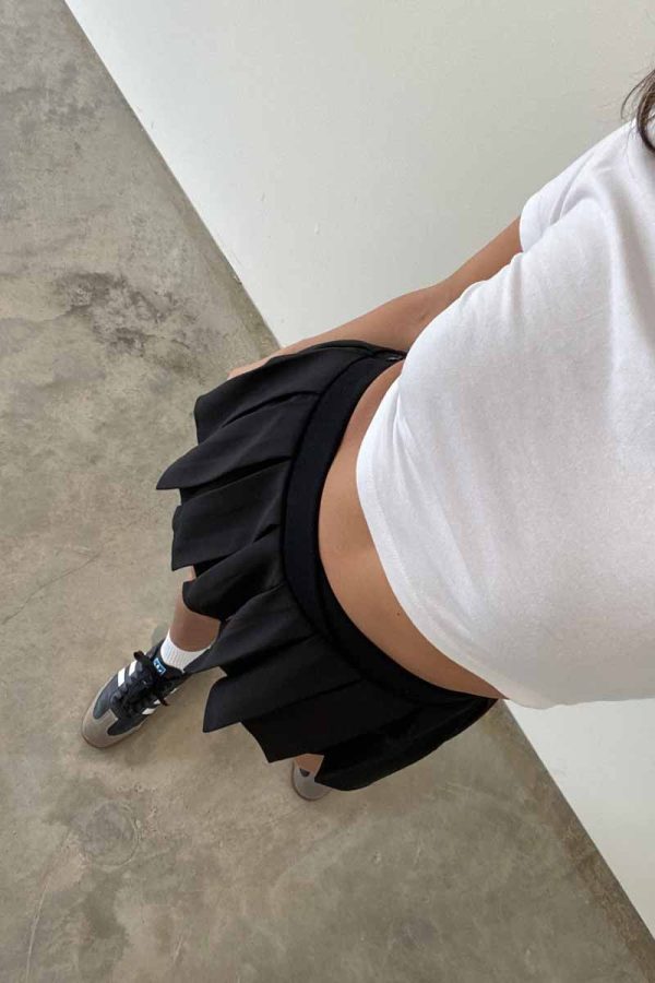 Experience a sleek and comfortable fit with the Courtney Tennis Skirt. Crafted with a pleated design and some stretch, this tennis skirt is perfect for any day on the court, or brunch with the girls. The flattering shape is sure to leave you feeling stylish and confident. This skirt comes in this stunning black, making it easy to style multiple ways.