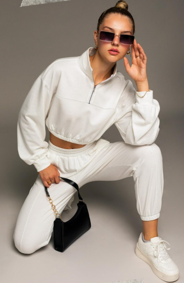 The cuter the gym outfit, the better the workout. Spice up your gym outfit Hallie Quarter Zip Crop. This cropsweater is super thin and breathable, making it perfect for all year round. This top comes in black and white, and has great stretch.