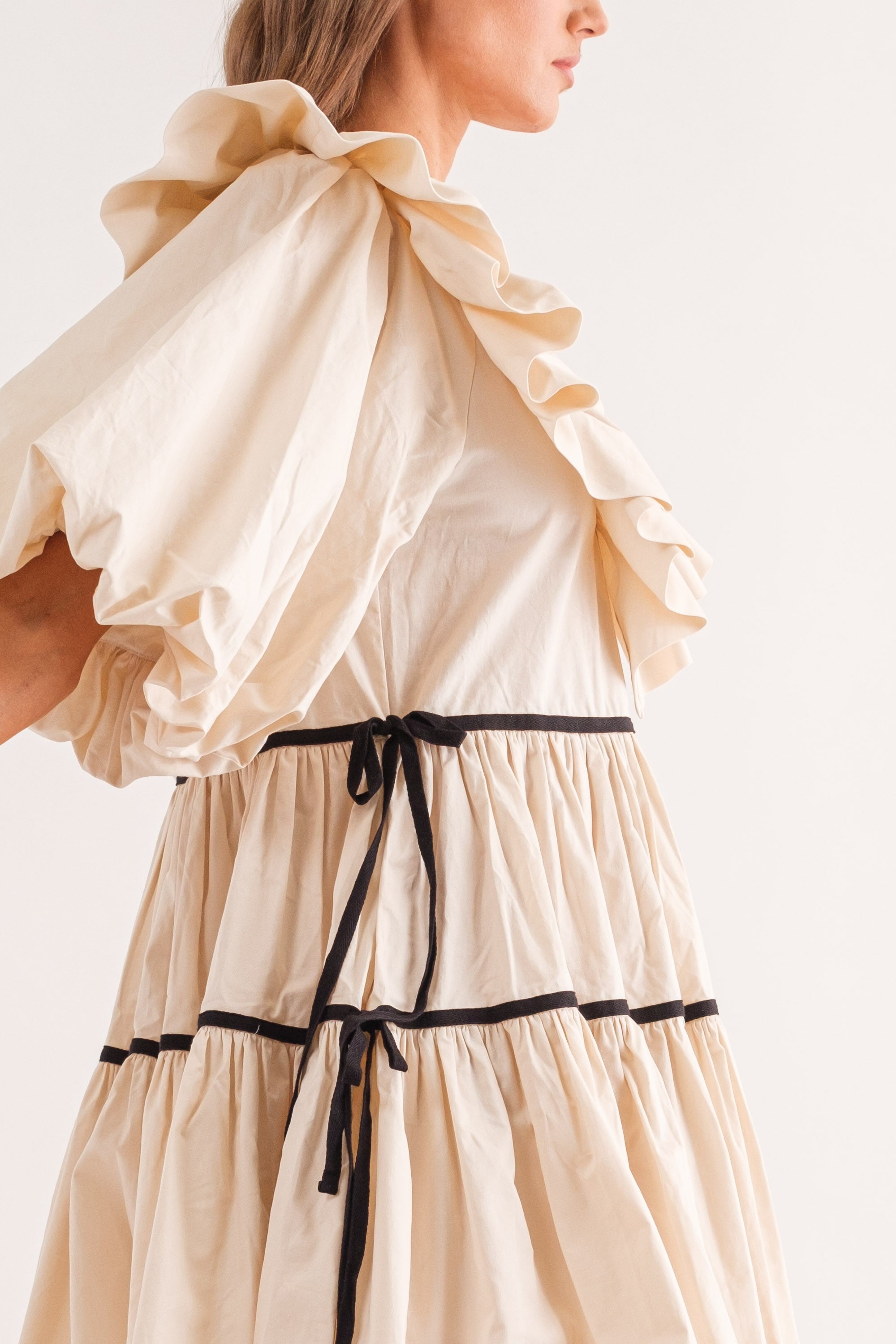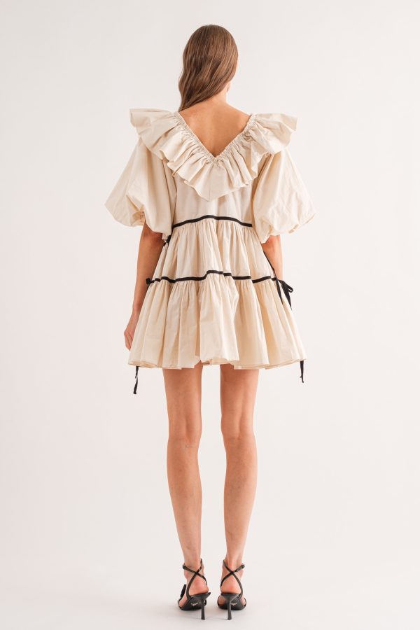 Introducing the Hazel Mini Dress – the perfectaddition for any wardrobe. Crafted from a luxury lightweight material, this dress is designed with a ruffle design V neckline and features an ultra-feminine combination of black and cream detailing. Further enhanced with billowy puff sleeves, this lovely babydoll dress creates a flattering look for any body type.