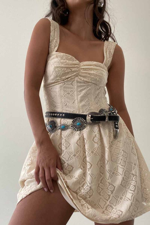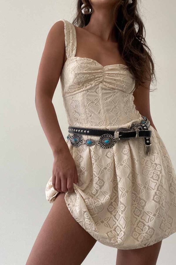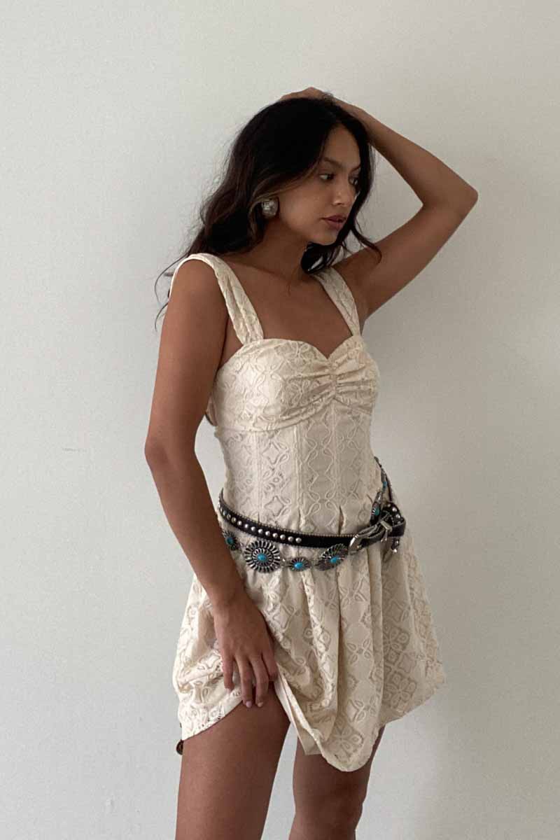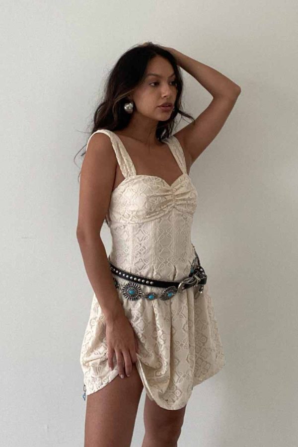 The Kylen Lace Corset Dress is a stylish mini dress featuring a delicate cream lace corset boning to emphasize anyones figure. Whether you’re going to acountry concertor simply want to make a statement, this dress offers a timeless elegantandtrendy look.