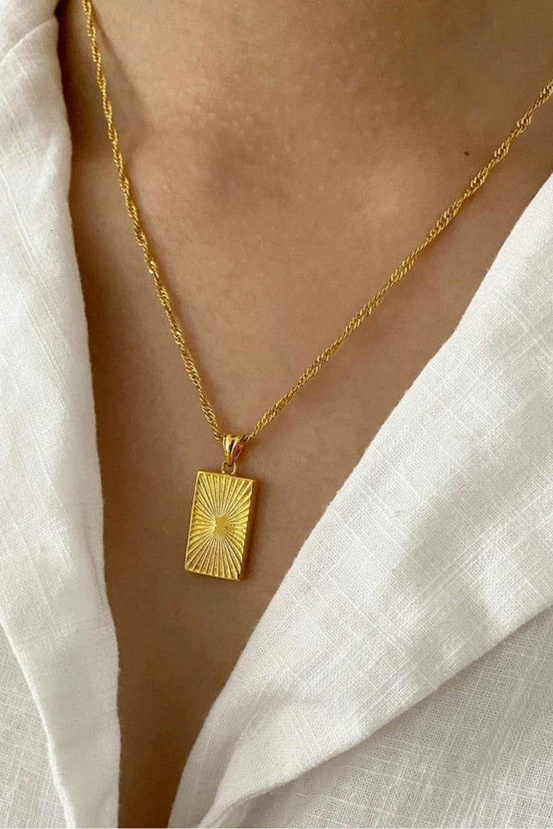 The Melina Necklace is a timeless classic made of plated stainless steel and featuring a square pendant. It has a necklace length of 16.53″ with lobster clasps for reliable closure, as well as 2.75″ extenders for extra comfort. With this beautiful necklace, you can always make a meaningful statement.