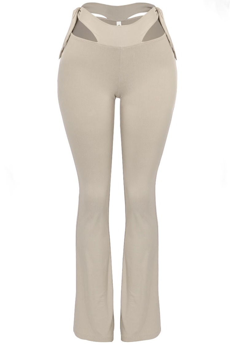 Sheridan Flare Leggings are sexy, cozy, and so trendy right now. These flared leggings come in this bone color, as well as an brown color. They feature a side cut out and adjustable self ties on the sides. These flared leggings are very stretchy and run true to size.