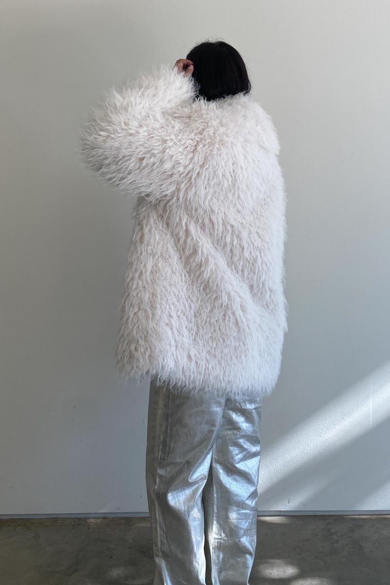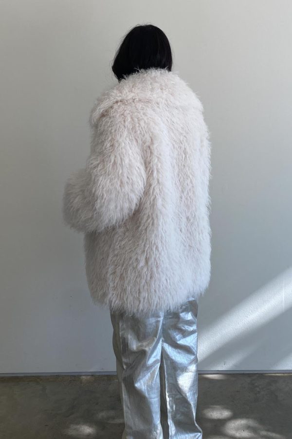 Introducing the Vail Jacket, a must-have fashion statement perfect for those cooler days. Crafted from a blend of cream-colored faux fur, this oversized jacket is lined with luxurious faux fur that will ensure warmth and comfort.Make a statement with the new Vail Jacket.